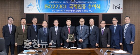 세종특별자치시(시장 이춘희)가 국내 최초로 U-City 업무연속성관리(BCMS, Business Continuity Management System) 국제인증을 획득했다고 밝혔다.