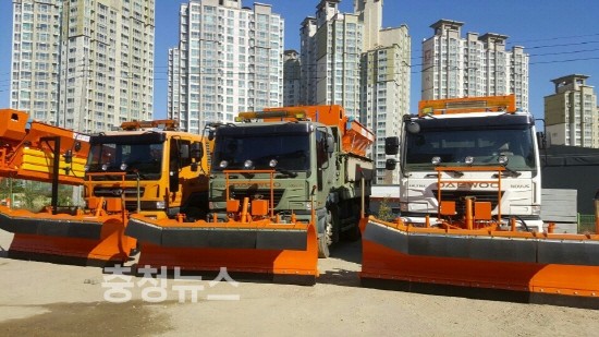 아산시 제설작업에 대한 의지는 매년과 남다른 것이 눈에 띤다. 우선 장비의 대대적인 확충으로 굴삭기 3대(증1대), 덤프트럭 및 15톤 살포기 각12대(증5대), 1톤 살포기 21대를 확보한 상태이다.
