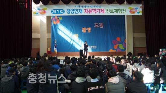 충남 청양군청소년상담복지센터(센터장 김현철)는 2일 충남도립대학교 해오름관에서 ‘꿈을 찾아 떠나는 진로체험여행’이라는 주제로 제1회 자유학기제 진로체험전을 개최했다고 밝혔다.