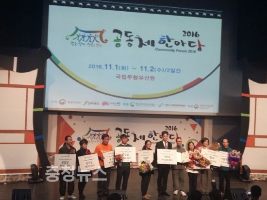 충남 보령시는 지난 2일 전북 전주시 완산구에 위치한 국립무형유산원에서 열린‘2016 행복한 공동체 발표 한마당에서 장려급인 공감상을 수상한 쾌거를 이뤘다. 이와 함께 내년도 어르신 공동체 활성화 사업으로 국비 4000만원도 확보했다고 밝혔다.