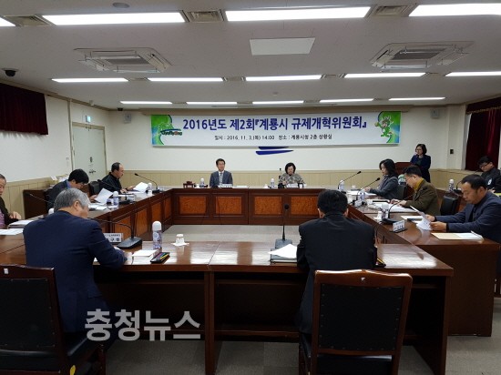 계룡시(시장 최홍묵)는 지난 3일 시청 상황실에서 전준호 부시장을 비롯한 규제개혁위원회 위원 10명이 참석한 가운데 ‘2016년 제2회 규제개혁위원회’를 개최했다고 밝혔다.