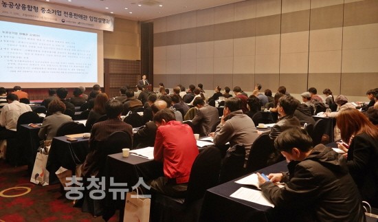 농림축산식품부(장관 김재수)와 한국농수산식품유통공사(사장 여인홍, aT)는 코레일(사장 홍순만), 코레일유통(사장 유제복)과 함께 11월 3일(목) 대전 리베라호텔에서 ‘농공상융합 중소기업 전용판매관 확장이전 입점설명회’를 개최했다.
