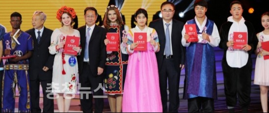 ▲ 제9회 한어교(汉语桥) 세계 고등학생 중국어대회 입상(오른쪽에서 다섯 번째 표경민(여) 학생)