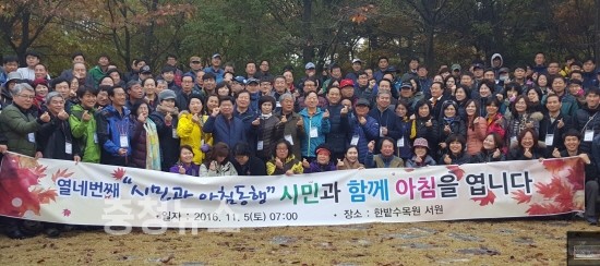 설동호 대전교육감은 5일 대전 엑스포시민광장 분수대에서 열린 제14회 ‘시민과 아침동행’에 참석 550여명의 시민들과 한밭수목원을 걸으면서 소통의 시간을 가졌다.