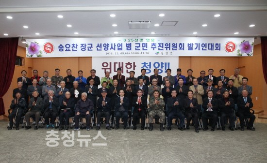 군은 8일 오전 군청 대회의실에서 이석화 청양군수를 비롯한 송요찬 장군 선양사업추진위원, 6·25참전용사, 각 기관 단체장 등 200여명이 참석한 가운데 ‘6·25전쟁 영웅 송요찬 장군 선양사업 범군민 추진위원회 발기인 대회’를 가졌다.