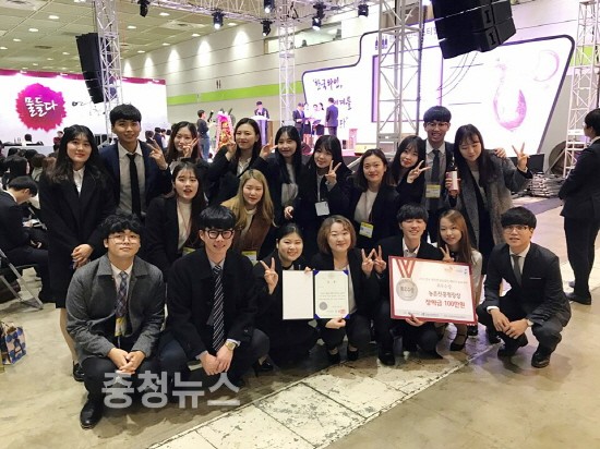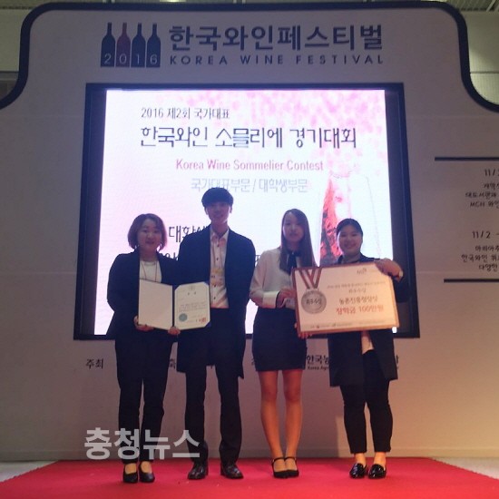 ▲ 한남대 학생들이 2016 한국와인 제안서 발표대회와 제2회 소믈리에경기대회에서 각각 최우수상과 장려상을 수상했다.