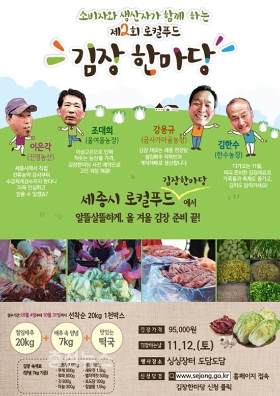 세종특별자치시(시장 이춘희)가 12일 로컬푸드 직매장 ‘싱싱장터 도담도담’에서 ‘로컬푸드 김장 한마당’을 개최한다.