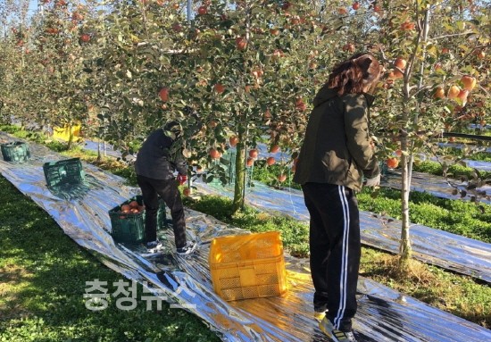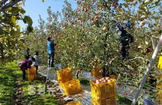 10일 군에 따르면 지난 9일 각 실·과·사업소 직원 100여 명이 참여한 가운데 4개 과수농가에 대해 사과 수확 등을 실시 고령화 농가, 일손부족 농가 등에 인력을 지원했으며 각 실·과와 읍·면사무소는 자체 계획을 수립해 일손 돕기를 추진하고 있다.