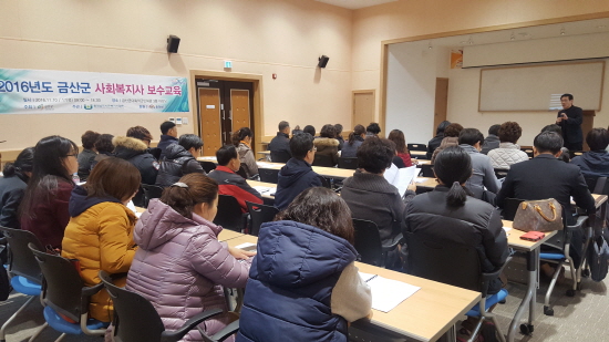 금산군이 지난 10일 관내 사회복지시설종사자 54명을 대상으로 2016년 사회복지사 보수 교육을 실시했다.