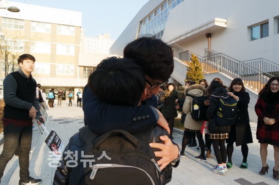 ▲ 선생님과 제자의 뜨거운 포옹 모습