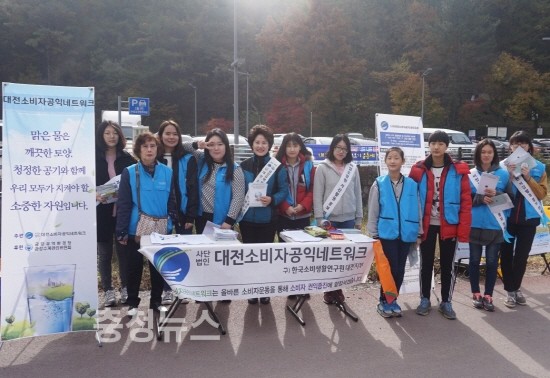 (사)대전소비자공익네트워크(회장 도정자)는 금강유역환경청(청장 정복영)의 후원을 받아 지난 12일 계룡산국립공원 수통골 주차장부근에서 등산객 시민 500명 대상으로 ‘비점오염 줄이기 홍보 캠페인’을 열었다.