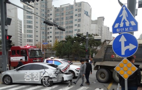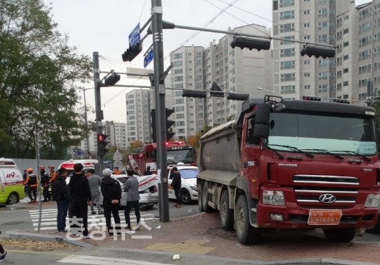 세종소방본부에 따르면 13일 오후 3시28분께 충남 천안 방향으로 직진하던 덤프트럭과 세종시청 조치원청사 방향으로 좌회전하던 승용차가 추돌했다.