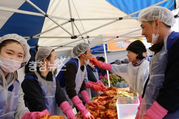 신종성대표와 골프존 임직원이 김장담그기 행사에 참여하고 있다
