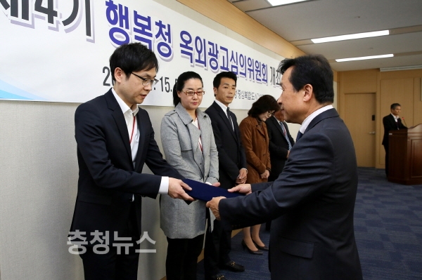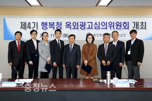 행정중심복합도시건설청(청장 이충재)은 세계적인 명품도시에 어울리는 행정중심복합도시의 미관을 향상하고 선진 광고 문화를 정착시키기 위해 광고물·디자인·도시계획 관련 분야 전문가 및 교수들로 구성된 ‘제4기 행복청 옥외광고심의위원회’를 구성하고 15일 위촉식을 개최했다고 밝혔다.