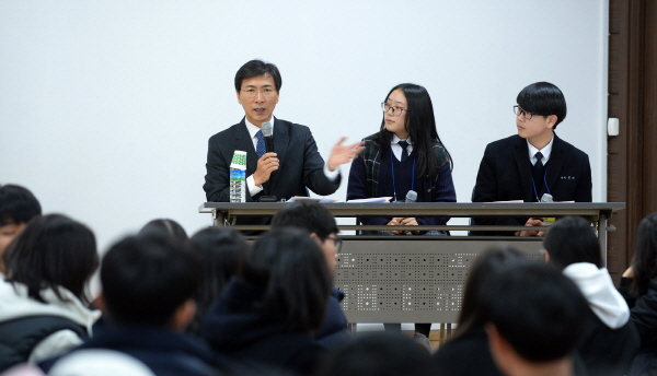 이날 충남 미래 리더와의 대화는 참가 학생들이 문자메시지로 질문을 보내면, 안 지사가 답변하는 토크콘서트 방식으로 진행됐다.