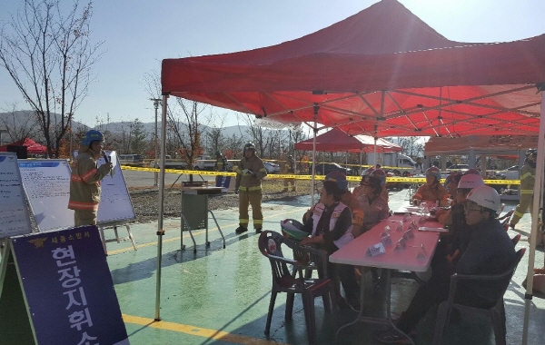 세종특별자치시 세종소방서(서장 임동권)가 15일 오후 2시 가람동 한국지역난방공사에서 긴급구조통제단 불시 가동훈련을 실시했다.