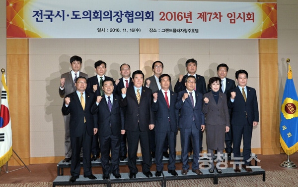 전국시도의회의장협의회(회장 윤석우)가 16일 청주호텔에서 7차 임시회를 열고 제출안건 심의·처리 및 주요 현안사항을 협의했다고 밝혔다.