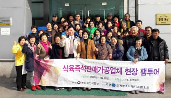 16일 (사)대전소비자공익네트워크(회장 도정자)는 주부 40여명과 함께 농림축산식품부(장관 김재수)의 주최로 열린 천안 식육즉석판매 가공업체 (주)다영푸드(대표 김대식) ‘현장 팸투어’를 다녀왔다.