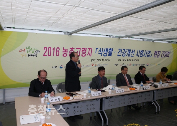 이번 김재수 장관의 방문은 청양군이 농촌고령자 식생활·건강개선 시범사업으로 전국 50개 마을 중 청남면 중산리를 포함한 5개 마을이 선정되면서 사업 현장 점검과 주민의 의견을 직접 청취하고자 실시됐다.