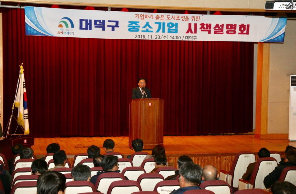 대전 대덕구(구청장 박수범)는 23일 덕암동 소재 대덕종합사회복지관에서 관내 중소기업 관계자 100여명이 모인 가운데 ‘대덕구 중소기업 시책설명회’를 개최했다.