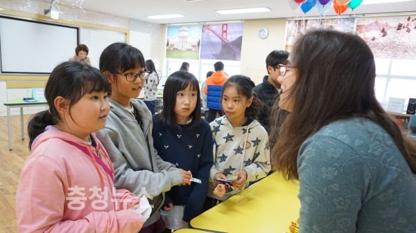 학생들은 이렇게 모은 쿠폰으로 영어체험실에 마련된 상점을 찾아 원어민교사와 대화하며 가지고 싶었던 학용품 등과 교환했다.