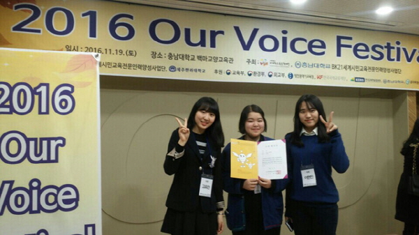 이번에 개최된 2016 Our Voice Festival은 (사)세계화교육문화재단이 주최하고 충남대학교 BK21 세계시민교육 전문인력 양성사업단과 제주한라대학교가 주관한 대회로, 제8회 전국 청소년 인성실천 대회, 제5회 전국 청소년 환경 프레젠테이션 대회, 제3회 대한민국 청소년 공공외교 실천대회 등 총 3개의 대회로 진행되었다.