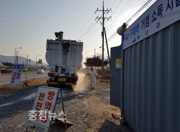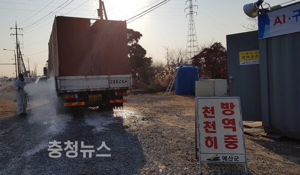 예산군이 AI(조류인플루엔자) 청정지역 사수를 위한 차단 방역에 총력을 기울이고 있다.