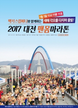 ‘2017 대전 맨몸마라톤’ 대회는 맥키스컴퍼니에서 주관하는 행사로 내년 1월 1일 오전 11시 11분 11초 엑스포시민광장 엑스포다리에서 출발한다. 이 대회는 친환경과학도시 대전의 관광자원을 전국에 알리고 새해를 이색적으로 맞이해보자는 취지에서 올해에 이어 내년에 2회째를 맞이한다. 대회 홈페이지(www.djmmrun.co.kr)나 인터넷 검색창 ‘대전맨몸마라톤’을 통해 대회 정보검색과 대전의 관광자원(숙박, 음식, 관광지 등) 정보도 함께 얻을 수 있다. 참가접수는 12월 11일(일)까지다.