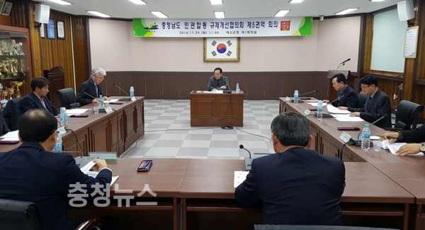 충남 예산군은 지난 29일 군청 제1회의실에서 ‘충청남도 제5권역(예산·홍성·청양) 민관합동 규제개선협의회’를 개최했다고 밝혔다.