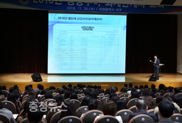 대전지방국세청 법인납세과 신동우 담당이 강사로 나서 ▲아파트의 납세의무 ▲수익사업개시에 따른 등록, 부가세가치세 신고, 법인세 신고 ▲고유목적사업준비금 처리 등 세무상 처리기준에 대하여 강의한 후, 공동주택관리지원센터 송광빈 주무관이 2016년 공동주택관리 실태조사결과 예산회계분야에 대한 지적사례를 설명하는 순으로 진행됐다.