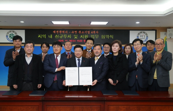 이번 협약을 통해 대전시와 협약참여 4개사는 각각 지역 내 본사, 공장, 부설연구소 등의 이전 및 신증설 신규투자를 통해 고용창출과 지역경제 발전에 공동노력하기로 했다.
