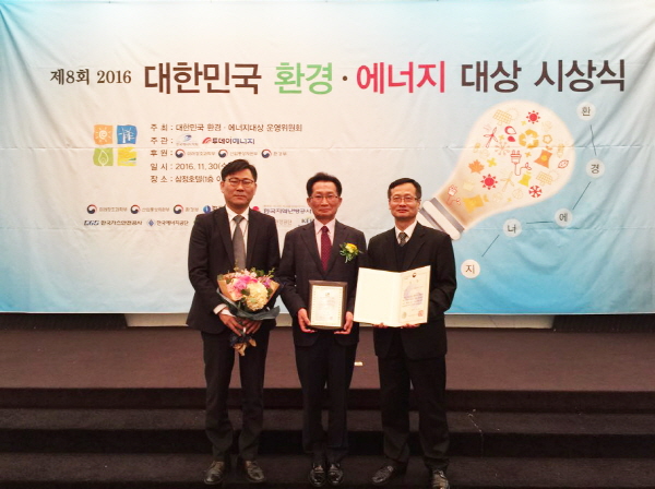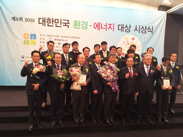 한국가스기술공사(사장 이석순)가 30일 “2016 대한민국 환경·에너지 대상 시상식”에서 2년 연속 환경·에너지 대상(환경부 장관상)을 수상했다.