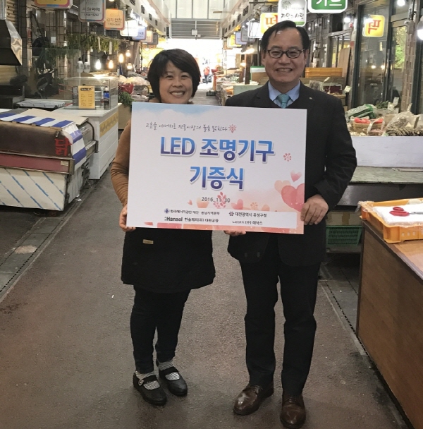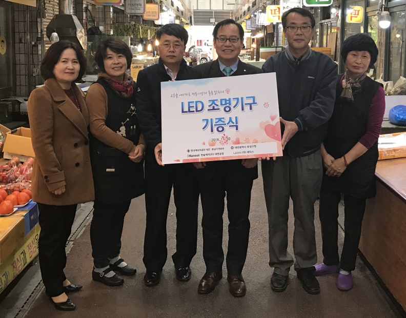 천석현 본부장은 “이번 기증식을 시작으로 내년에도 전통시장 고효율 LED 조명기기 교체사업을 통해 영세, 소상공인들의 전기요금 부담완화 및 시장 활성화를 위하여 노력하겠다.“고 밝혔다.