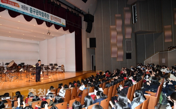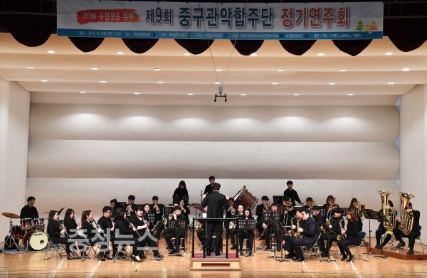 대전 중구(구청장 박용갑)와 중구문화원(원장 노덕일)은 1일 대전평생학습관 대강당에서 대학수학능력시험을 마친 고3 수험생들의 일탈을 예방하고 문화향유의 기회를 제공하기 위해 ‘제9회 관악합주단 정기연주회’를 개최했다.