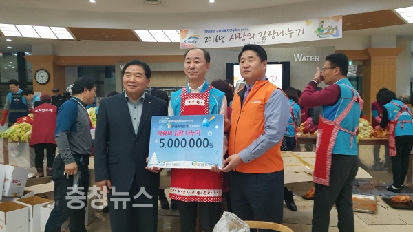 대전 대덕구 회덕동 복지만두레(회장 김형식)와 한국수자원공사 경영본부(경영본부장 곽수동)에서는 지난 달 30일 대덕구 연축동 소재 한국수자원공사 직원 식당에서‘2016 사랑의 김장 나누기’행사를 실시했다.