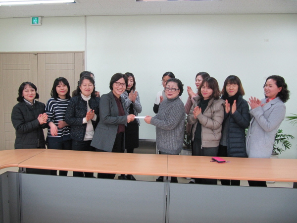 대전시에 근무하는 환경직 여성공무원으로 구성된 ‘환여울회(회장 이재면)’가 1일 성우보육원을 방문해 회원들의 정성을 모아 마련한 난방비 50만 원을 전달했다.