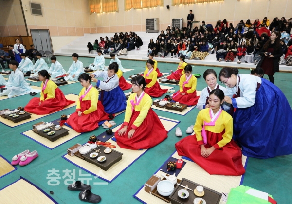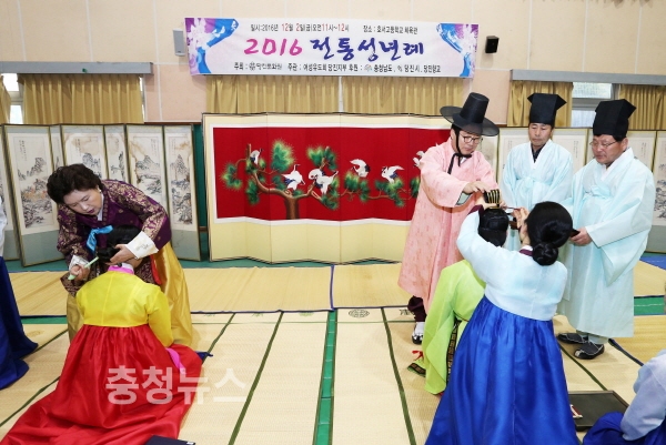 충남 당진 호서고등학교에서는 3학년 남녀 학생 30명은 당진문화원과 성균관여성유도회 당진지부가 마련한 전통성년례 재현행사에 참여해 졸업을 앞두고 소중한 추억을 쌓았다.