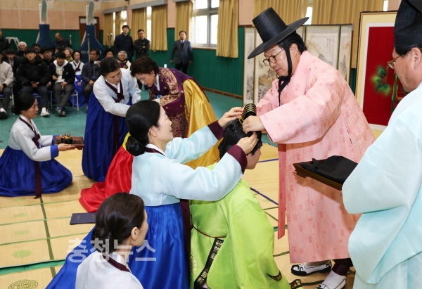 또한 김홍장 당진시장과 정정희 충남도의원은 각각 남학생에게 관을 씌워주는 의식의 관빈과 여학생에게 비녀를 꽂아주는 의식의 계빈으로 참가해 성년으로 사회에 나가는 학생들을 축하했다.