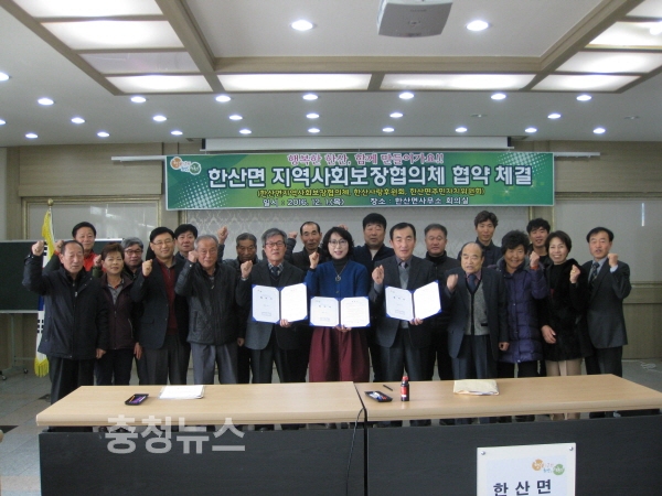 이번 협약 체결은 30여명의 회원이 참석한 가운데 지난 10월에 구성된 한산사랑후원회와 노인건강교실 지원 및 저소득층 화장실 지원사업등 지역사회 봉사에 앞장서 온 주민자치위원회가 함께 지역사회보장협의체에서 발굴한 복지대상자의 정보 공유 및 맞춤형지원으로 지역복지서비스의 질을 더욱 높이기로 결의하였다.