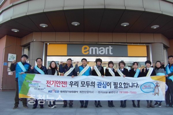 한국전기안전공사제천단양지사(지사장 심재원)는 12.2일 제천시청 안전총괄과와 합동으로 제천시 강제동 “E-마트 제천점”에서 '12월 안전점검의 날' 행사 관련 캠페인 활동을 실시하였다.