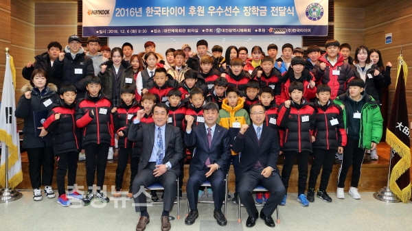한국타이어는 지난 1997년부터 올해까지 20년간 대전지역 우수 체육 선수 850여명에게 총 4억여원의 장학금을 전달했다.
