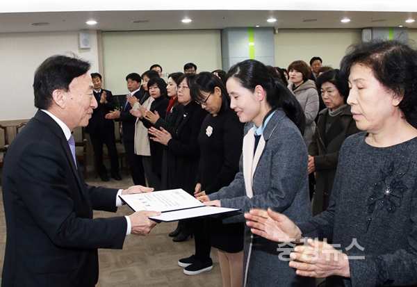 각자의 업무분야에서 투철한 사명감과 성실한 자세로 대전교육발전에 기여한 공적을 인정받아 충남여자고등학교 행정실무원 양준숙 등 총23명과 2016년 학교급식유공자 학하초등학교 영양사 길정아 등 10명, 총 33명이 표창장을 수여받았다.