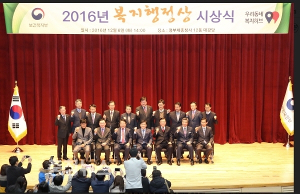 보령시는 지난 6일 정부세종청사 12동 대강당에서 열린 2016년 복지행정상 합동 시상식에서‘복지재정효율화-부적정수급 환수 및 확인조사 이행분야’에서 영예의 대상을 차지해 보건복지부장관 기관표창과 함께 포상금 5000만 원을 받았다고 밝혔다.