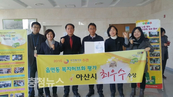 충남 아산시(시장 복기왕)는 지난 12월 6일 보건복지부에서 실시한 2016. 지역복지사업평가 【읍면동 복지허브화 맞춤형복지서비스 기반마련】부문에서 2016년 복지행정상 최우수상과 포상금 3,000만원을 수상했다.
