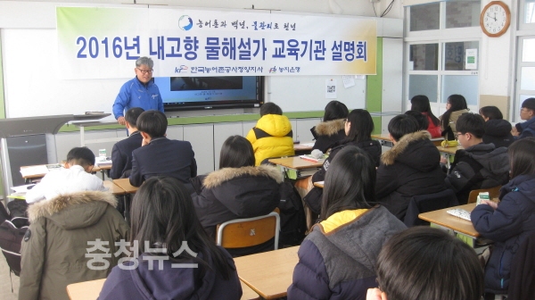 한국농어촌공사 청양지사(지사장 유상선)는 지난 8일 김기웅 한국농어촌공사 ‘내고향 물 해설가’를 초청해 청양중학교 학생들을 대상으로 소중한 내고향 물(농업용수)과 수리시설의 중요성 및 가치를 홍보하는 교육을 진행했다고 밝혔다.