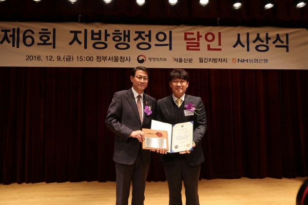 지방행정의 달인은 행정자치부에서 전국 36만 명 지방공무원을 대상으로 창의적인 아이디어와 전문성, 열정으로 국가와 지역사회에 기여한 최고의 공무원을 뽑아 시상하는 상으로 개인 실적심사, 현지실사, 발표심사 등 심층검증을 통해 올해 13명이 선정되었다.