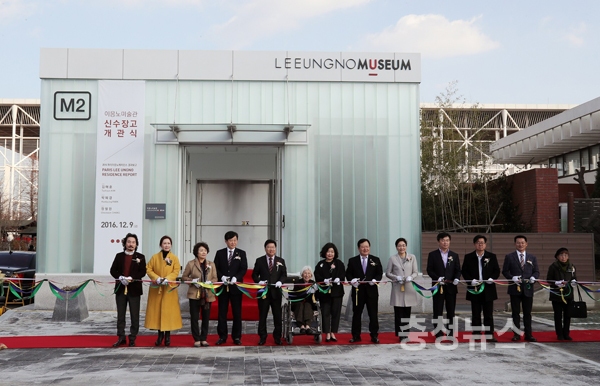 이응노미술관 신수장고 현장에서 진행된 개관식에는 권선택 대전시장과 김경훈 시의회 의장, 박인경 명예관장, 대전시 명예시장, 지역 문화예술 관계자 등 50여명이 참석했다.