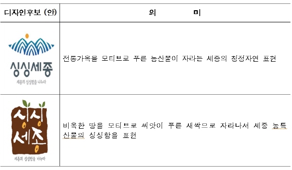 세종시는 여러 개의‘싱싱세종’디자인 중에서 최종 후보(안) 2개를 선정했다.