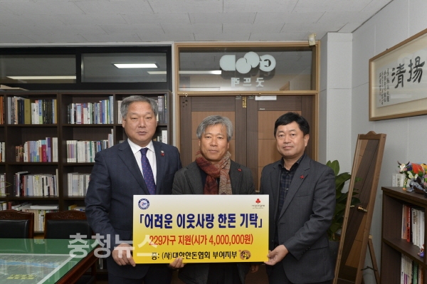 (사)대한한돈협회 부여지부(회장 김경수)는 지난 12일 어려운 이웃들과 소외계층을 돕기 위한 이웃사랑 한돈 458kg(시가 400만원)을 부여군에 기탁해왔다.