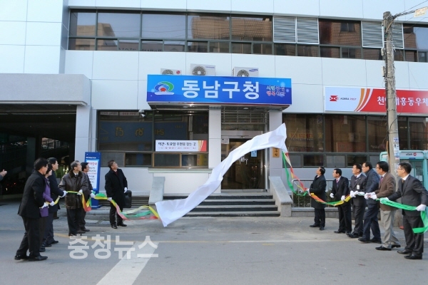 충남 천안시 동남구가 구청사 도시재생사업에 따라 천안삼거리공원 안에 있는 세계민족음식테마관과 천안대흥동우체국으로 임시청사를 이전하고 12일부터 업무를 시작했다.